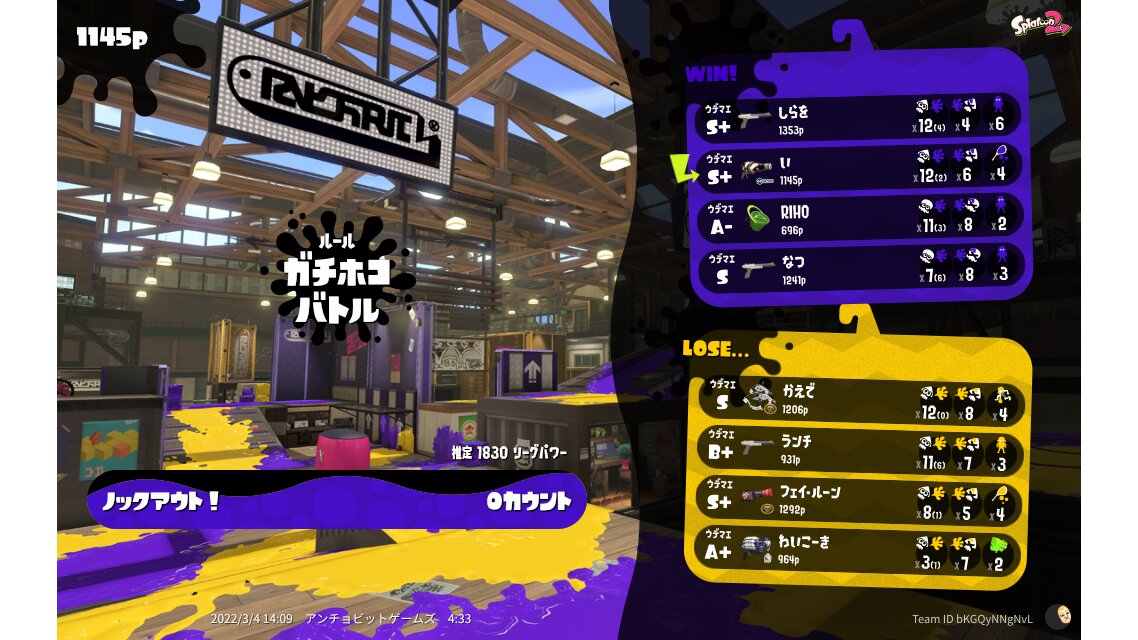 | Name | Weapon | Level | Rank | Inked | k+a/sp | k/d |