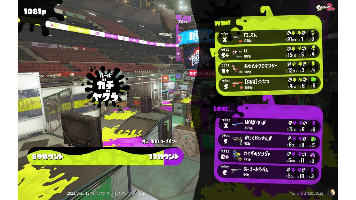 | SplatNet Battle # | 21,085 | |||||||||||||||||||||||||||||||||||||||||||