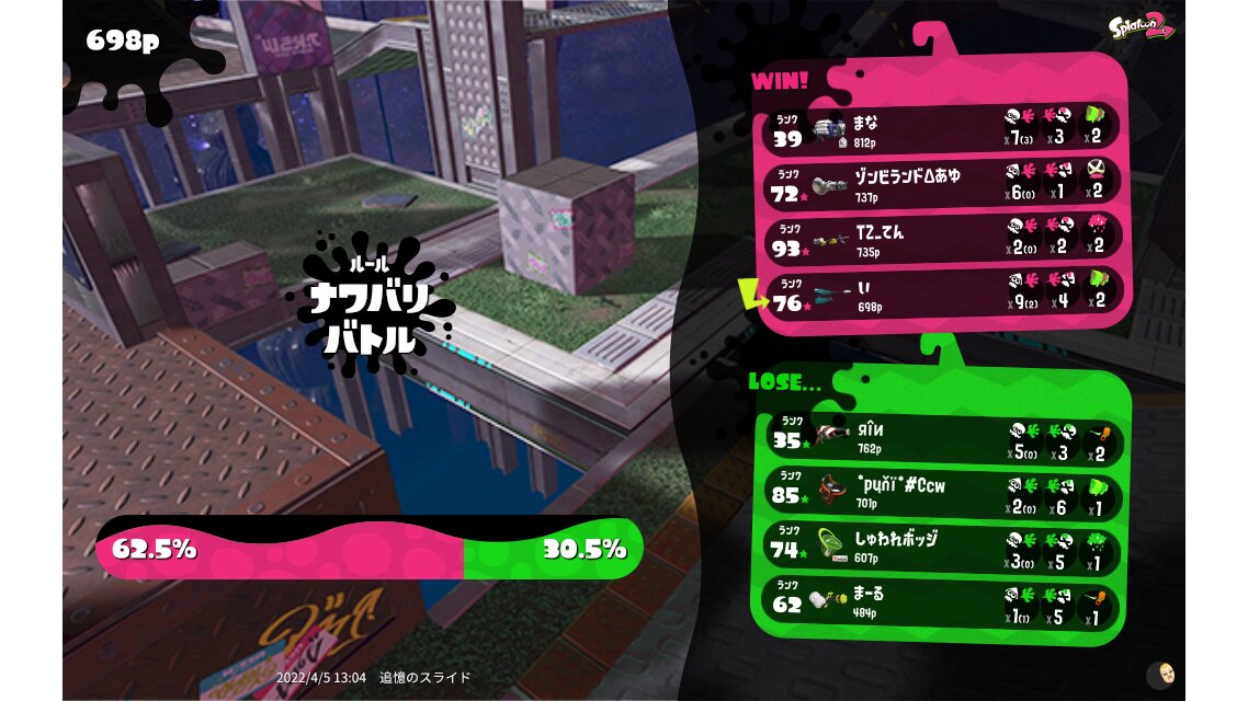 | Mode | Turf War - Private Battle | ||||||||||||||||||||||||||||||||||||||||