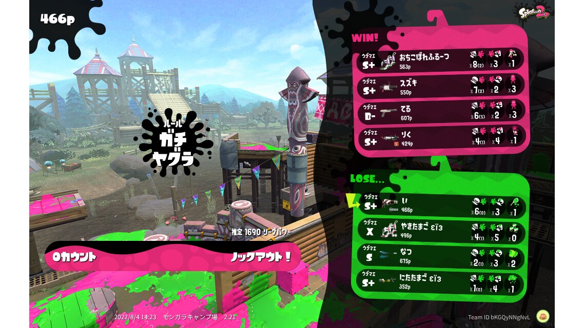 | Name | Weapon | Level | Rank | Inked | k+a/sp | k/d |