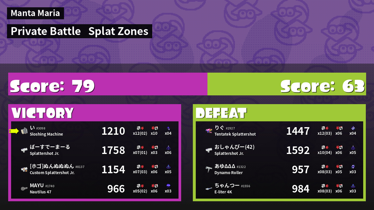 | Medals | #1 Overall Splatter #1 Splat Zone Guard #1 Enemy Splatter | ||