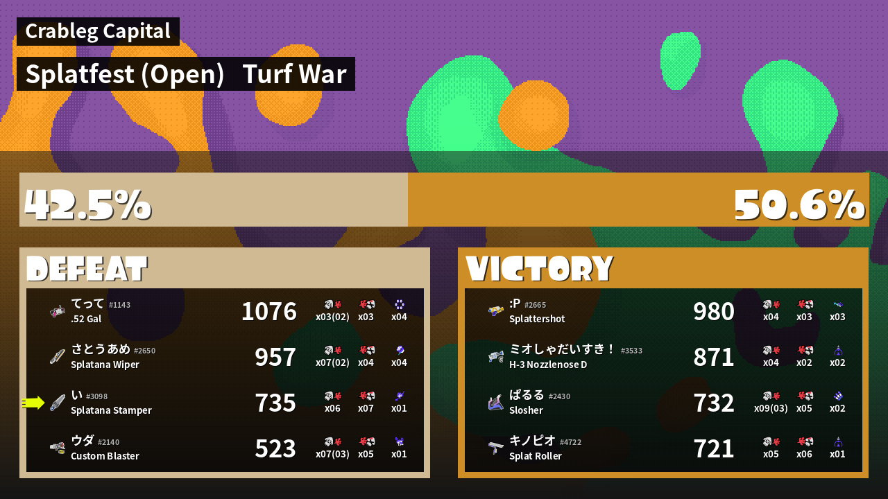 | Mode | Turf War - Splatfest (Open) | ||