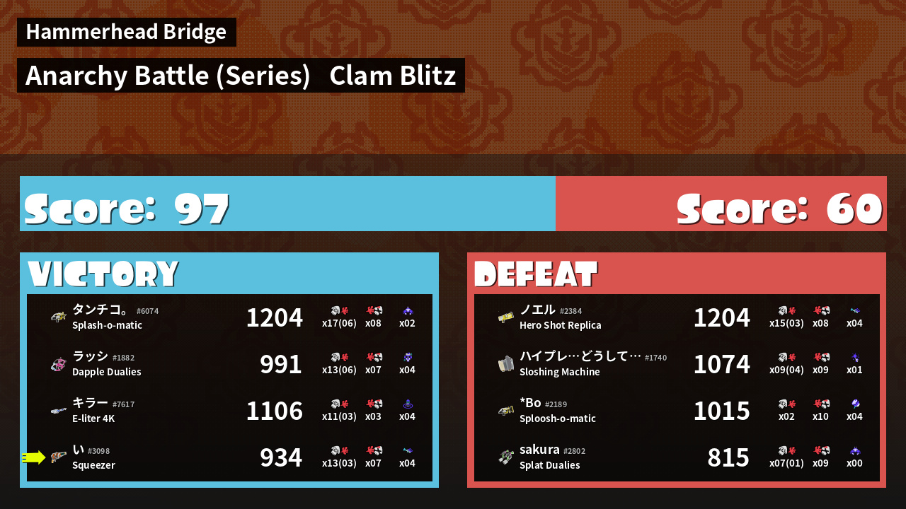 | Mode | Clam Blitz - Anarchy Battle (Series) | ||
