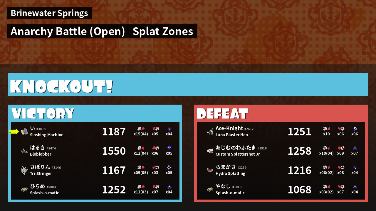 | Mode | Splat Zones - Anarchy Battle (Open) | ||