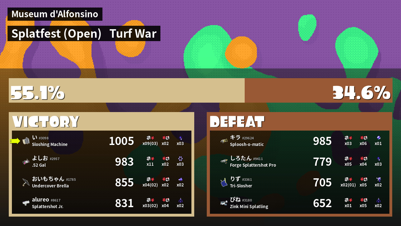 | Medals | #1 Turf Inker #1 Enemy-Base Inker #1 Super Jump Spot | ||