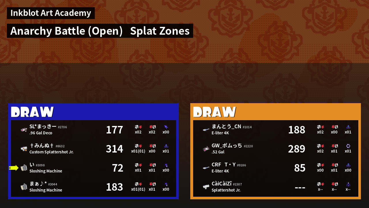 | Mode | Splat Zones - Anarchy Battle (Open) | ||