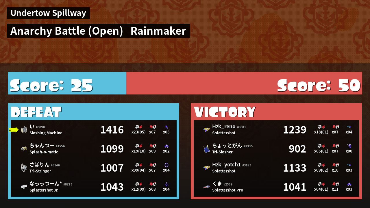 | Mode | Rainmaker - Anarchy Battle (Open) | ||