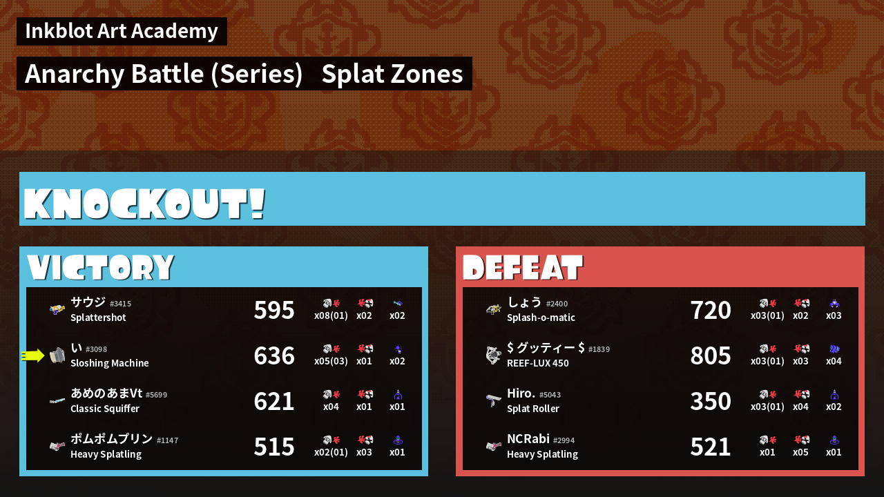 Name | Weapon | Inked | ![]() |