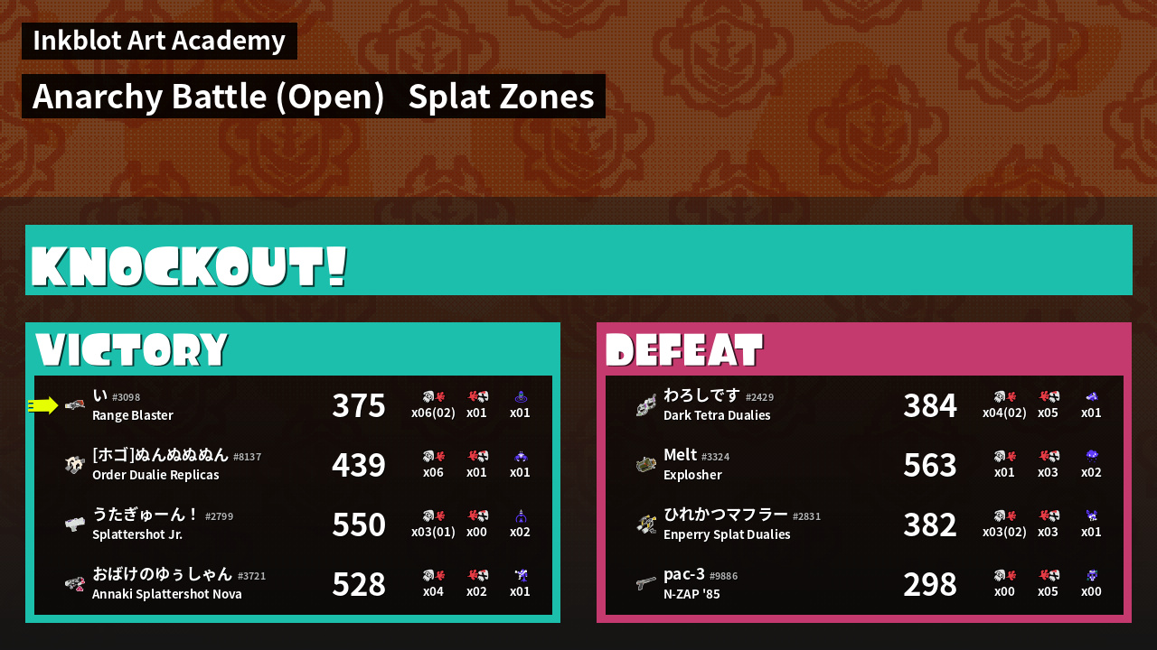 | Mode | Splat Zones - Anarchy Battle (Open) | ||