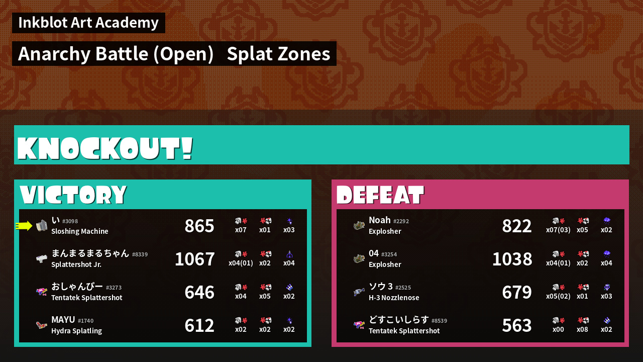 | Mode |  Splat Zones -  Anarchy Battle (Open) | ||