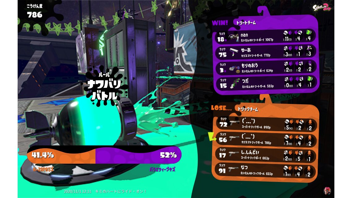 | Splatfest Title | トリック Champion 502 → トリック Champion 522 | ||||||||||||||||||||||||||||||||||||||||