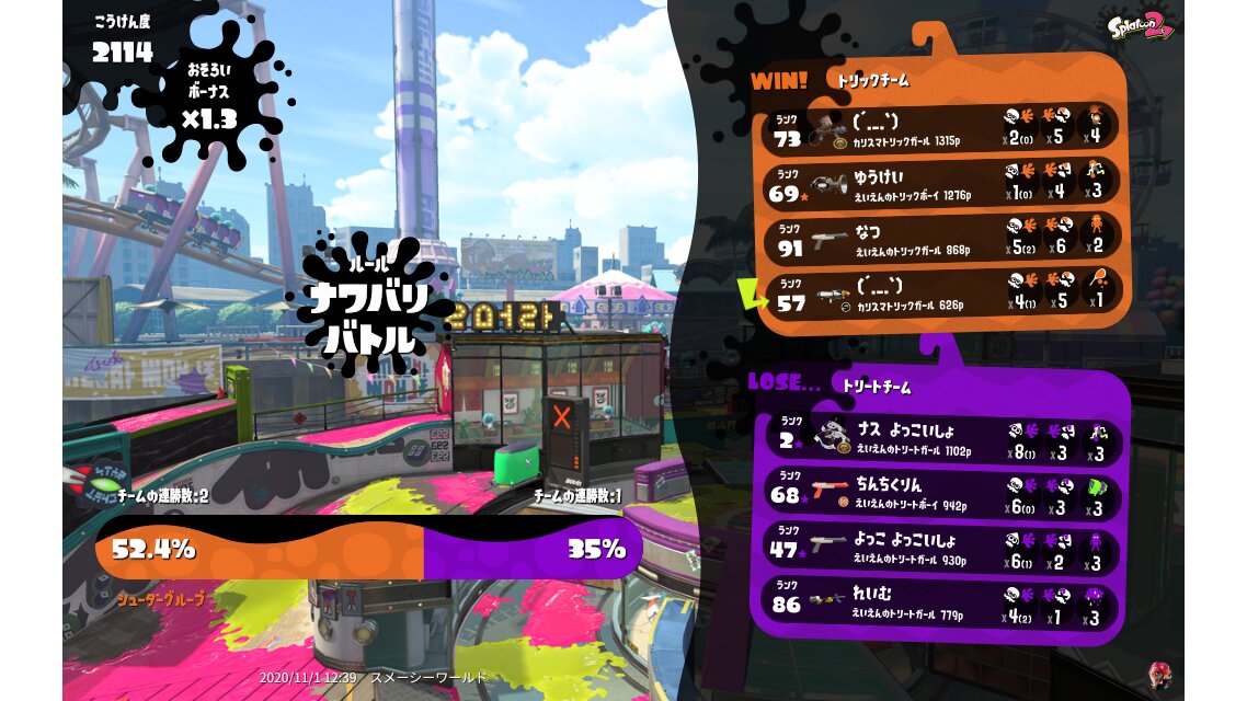 | Splatfest Title | トリック Champion 741 → トリック Champion 858 | ||||||||||||||||||||||||||||||||||||||||