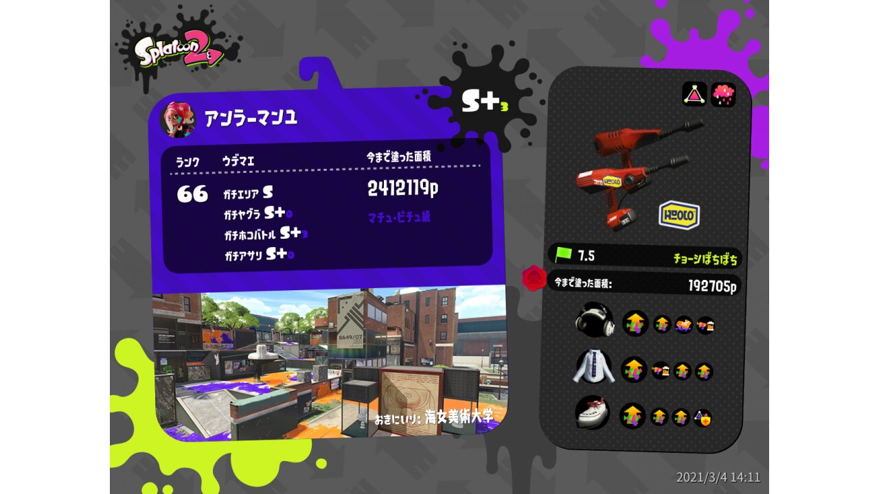 | Name | Weapon | Level | Rank | Inked | k+a/sp | k/d |