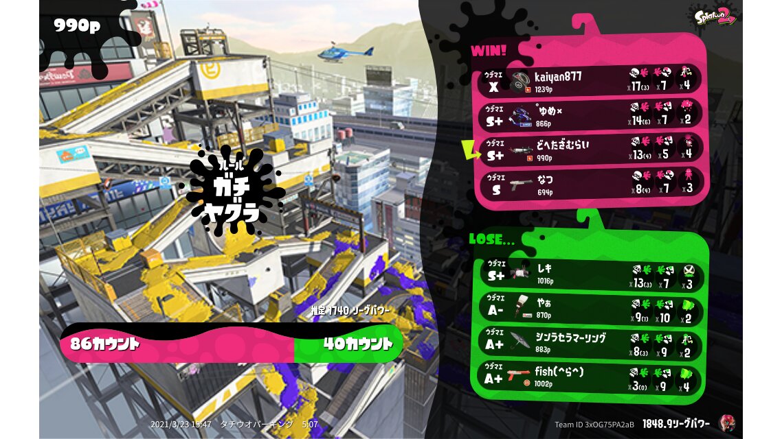 | Mode | Tower Control - League Battle (Twin) | ||||||||||||||||||||||||||||||||||