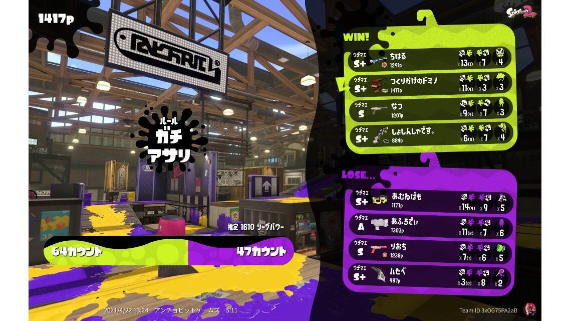 | SplatNet Battle # | 3,415 | |||||||||||||||||||||||||||||||