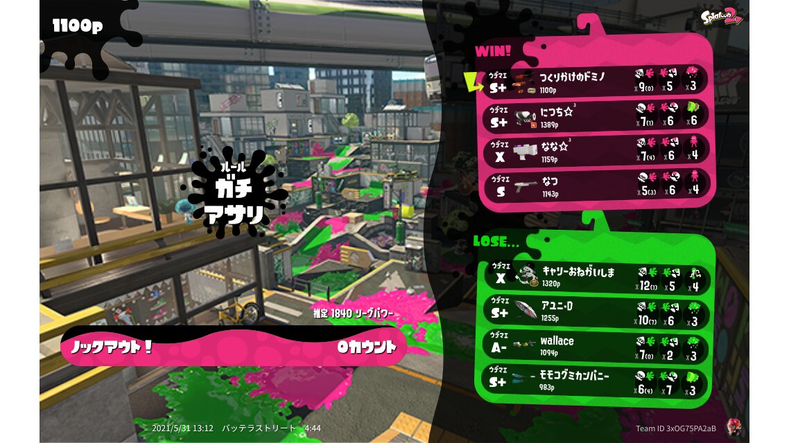 | Mode | Clam Blitz - League Battle (Twin) | |||||||||||||||||||||||||||||||