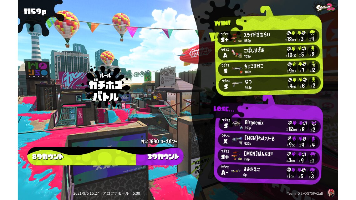 | Mode | Rainmaker - League Battle (Twin) | |||||||||||||||||||||||||||||||
