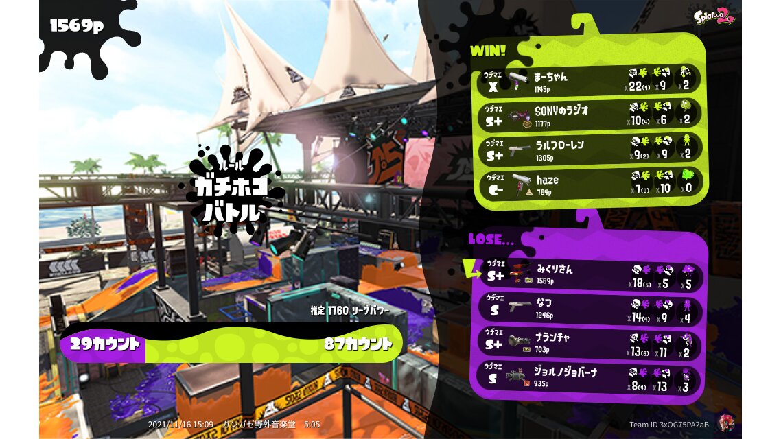 | Mode | Rainmaker - League Battle (Twin) | |||||||||||||||||||||||||||||||