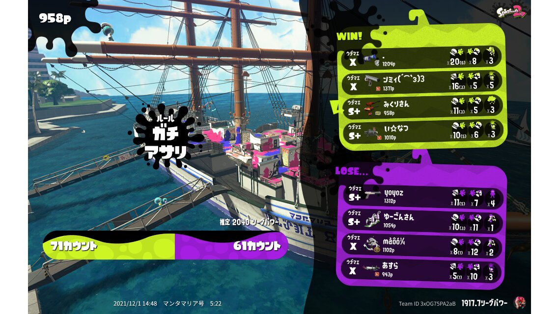 | Mode | Clam Blitz - League Battle (Twin) | |||||||||||||||||||||||||||||||