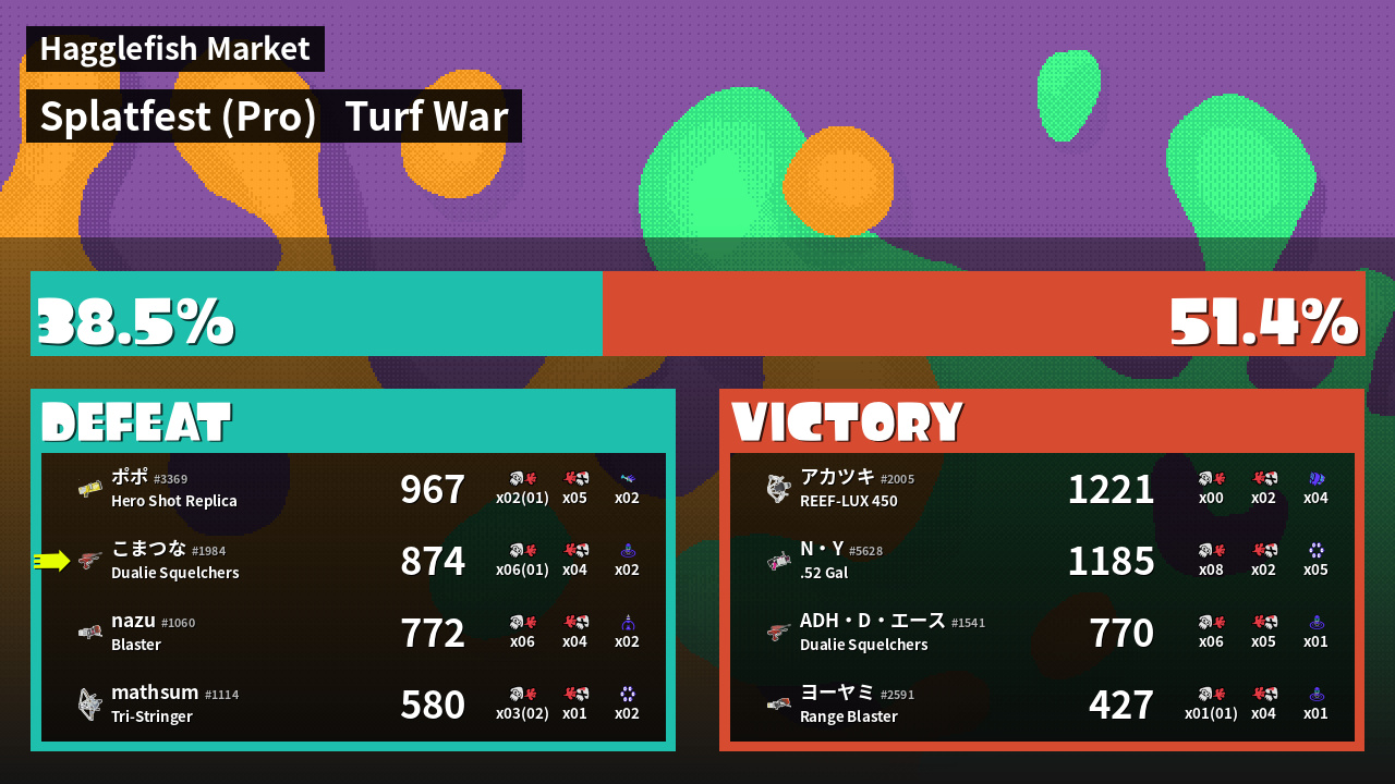 | Mode | Turf War - Splatfest (Pro) | ||
