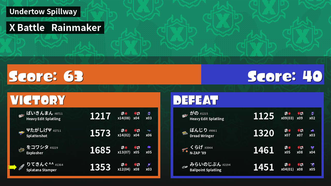 | Mode | Rainmaker - X Battle | ||