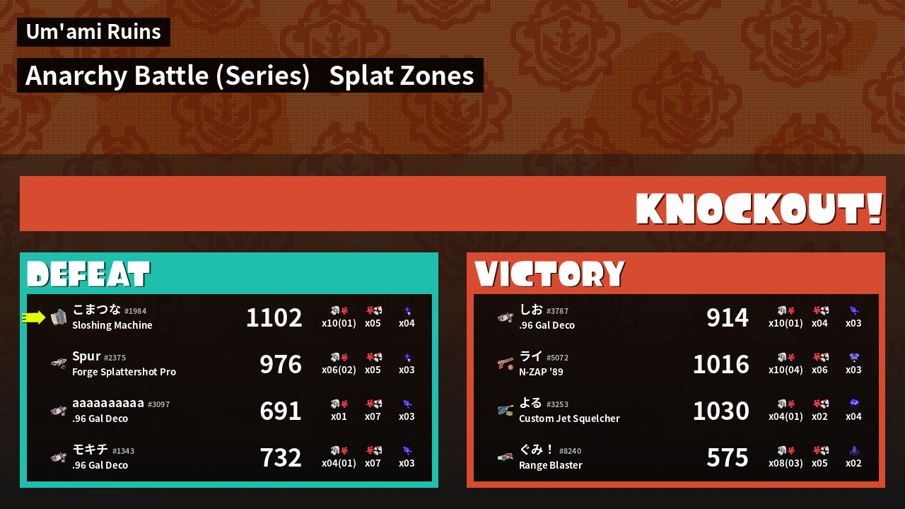 | Medals | #1 Overall Splatter #1 Splat Zone Guard #1 Turf Inker | ||