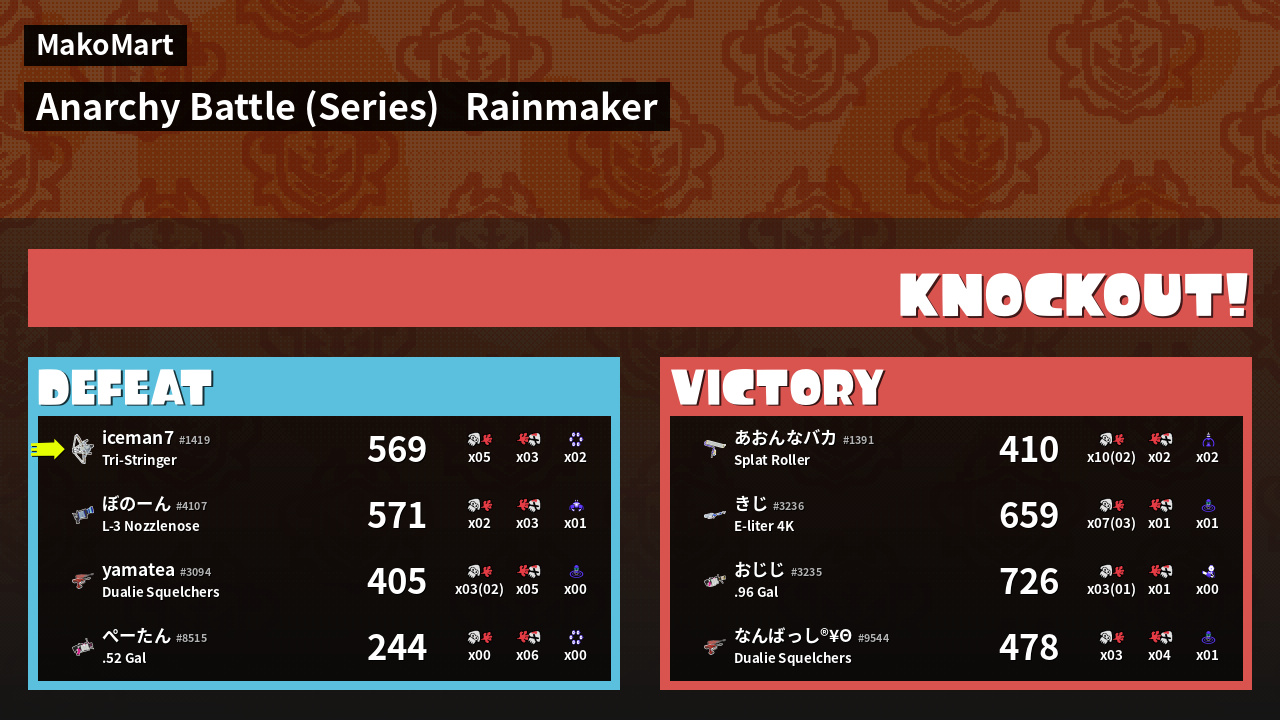 | Mode | Rainmaker - Anarchy Battle (Series) | ||
