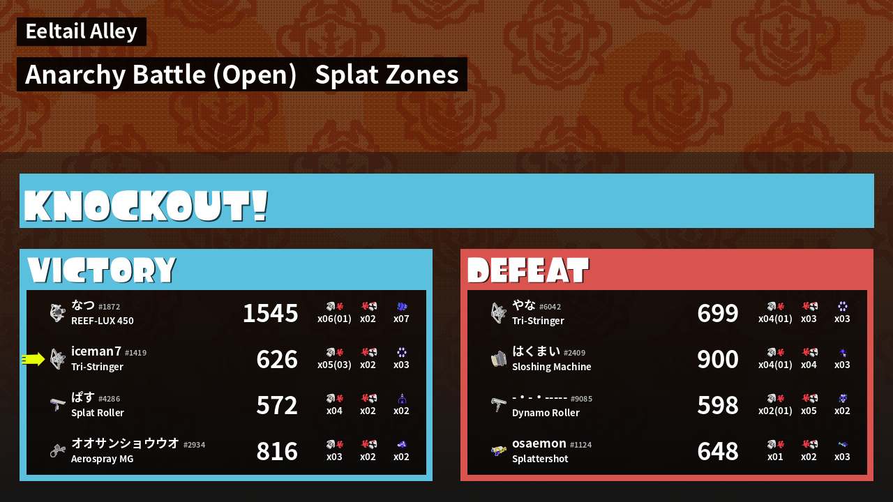 | Mode | Splat Zones - Anarchy Battle (Open) | ||