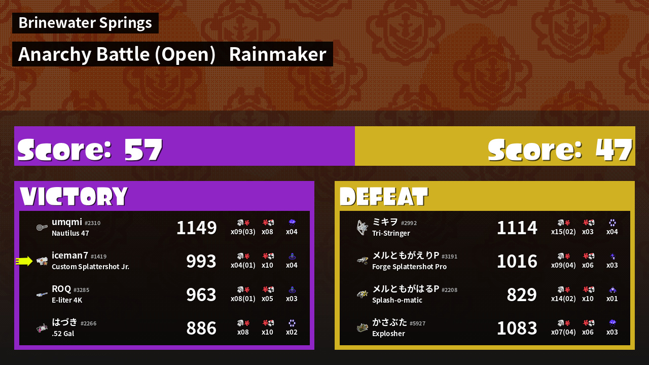 | Mode | Rainmaker - Anarchy Battle (Open) | ||