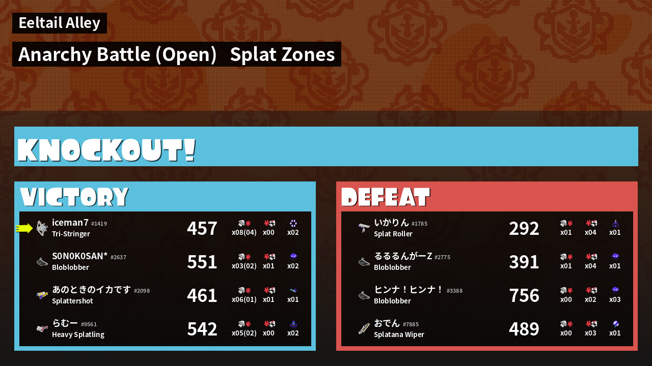 | Mode | Splat Zones - Anarchy Battle (Open) | ||