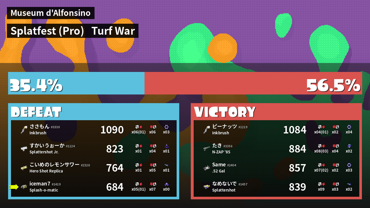 | Mode | Turf War - Splatfest (Pro) | ||