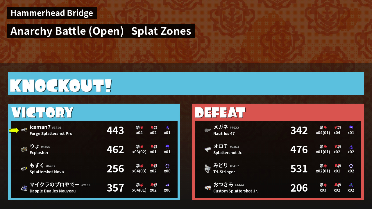 | Mode | Splat Zones - Anarchy Battle (Open) | ||