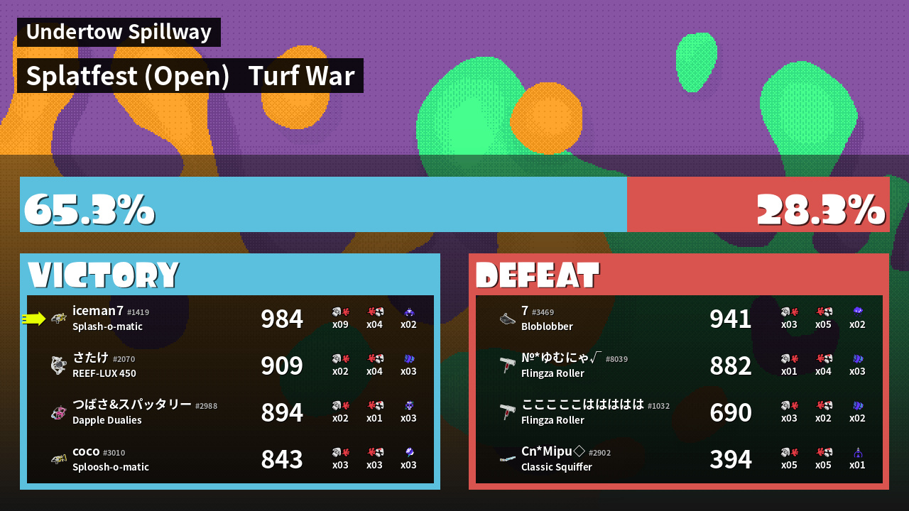 | 今年のイカ iceman7 #1419 |  Splash-o-matic     | 984 | 9 + 0 | 4 | 2.25 |  2 | |