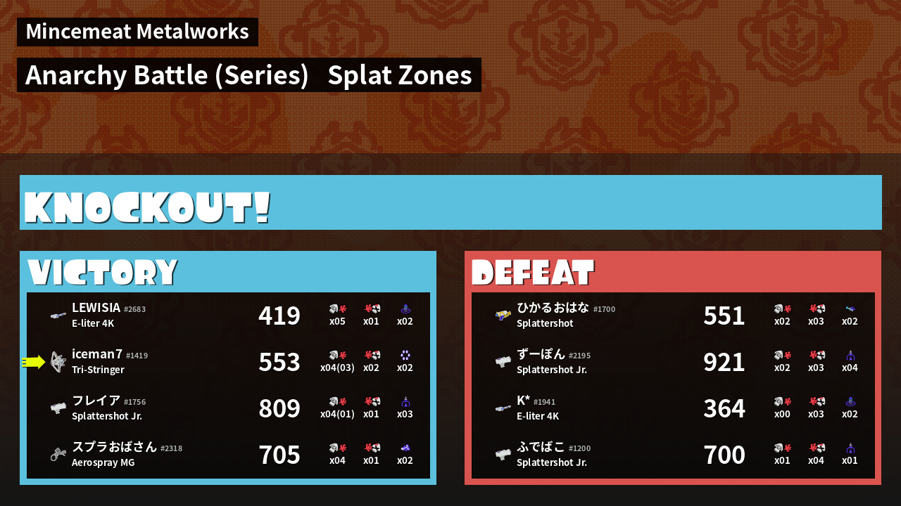 | Medals | #1 Splat Zone Guard #1 Splat Assister #1 Damage Taker | ||