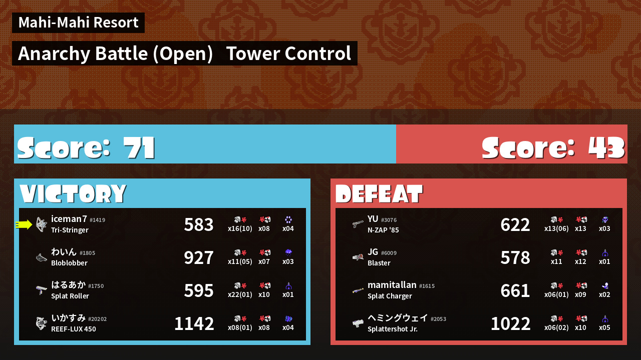 | Mode | Tower Control - Anarchy Battle (Open) | ||