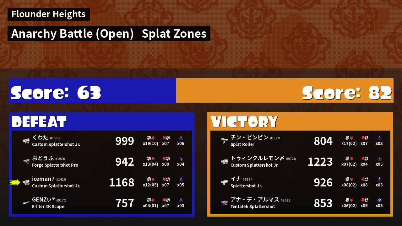 | Mode | Splat Zones - Anarchy Battle (Open) | ||