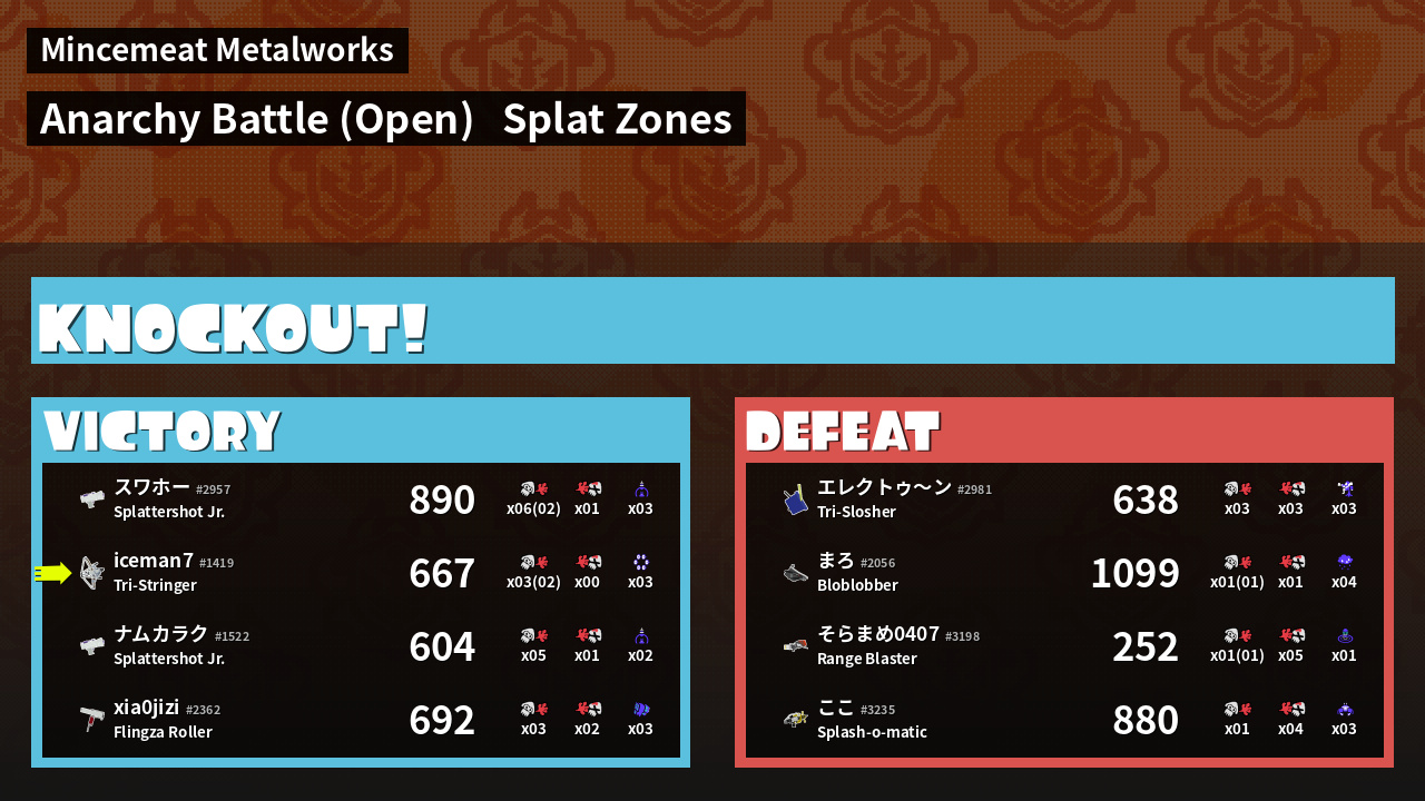 | Mode | Splat Zones - Anarchy Battle (Open) | ||