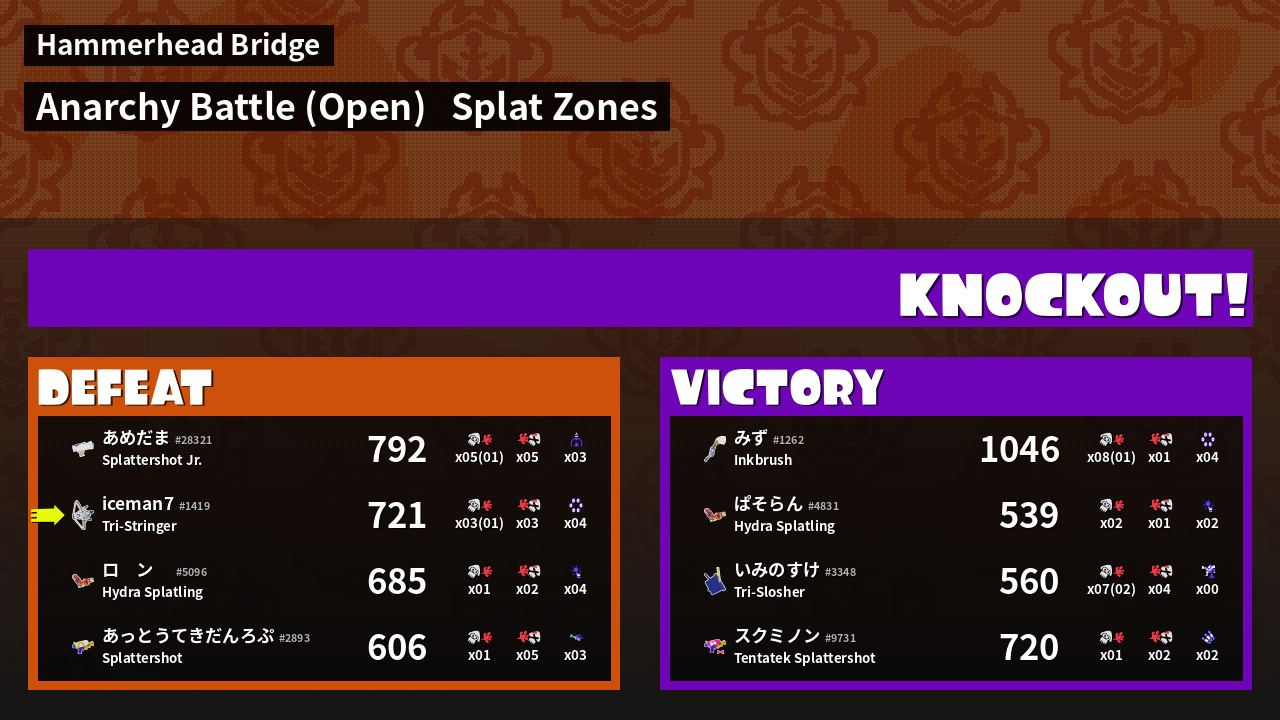 | Mode | Splat Zones - Anarchy Battle (Open) | ||