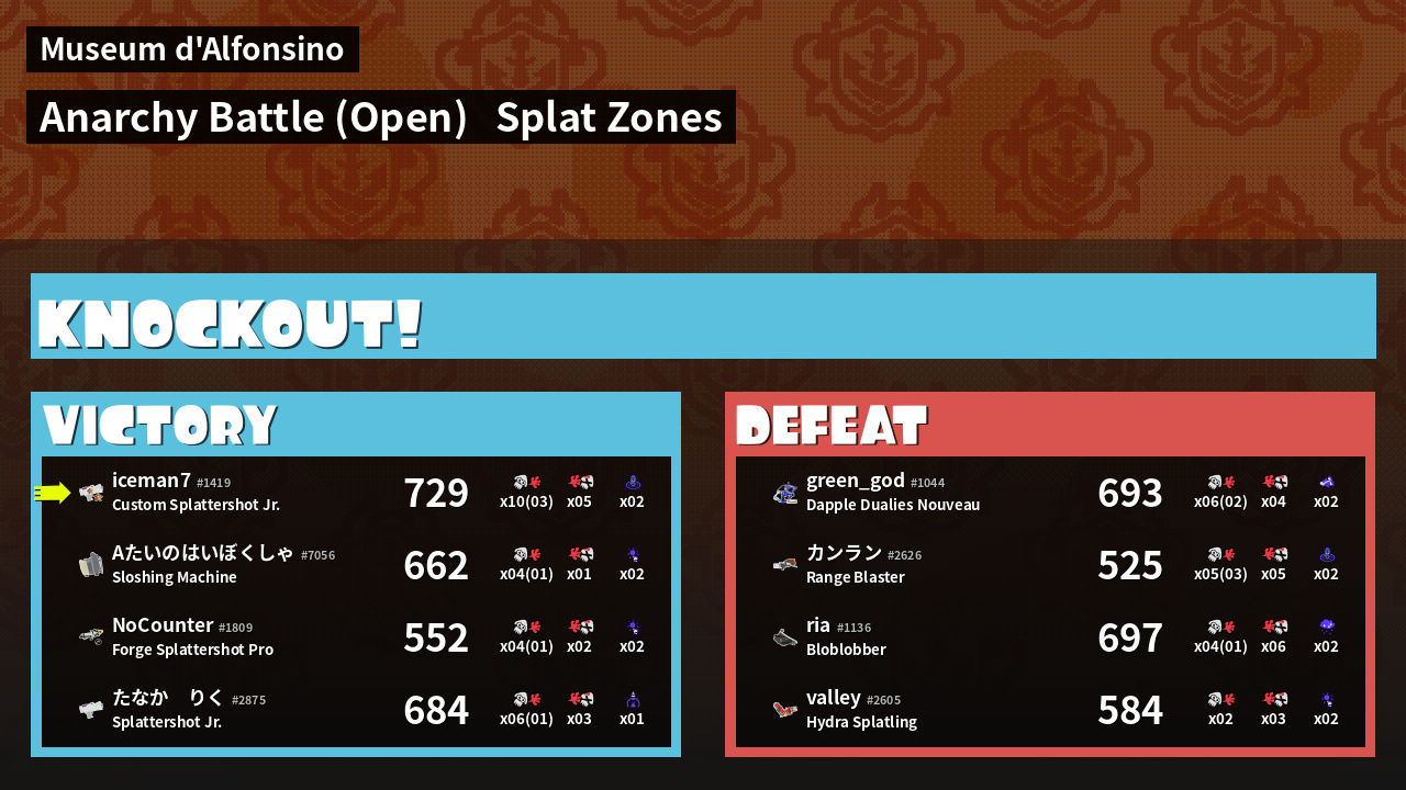 | Mode | Splat Zones - Anarchy Battle (Open) | ||