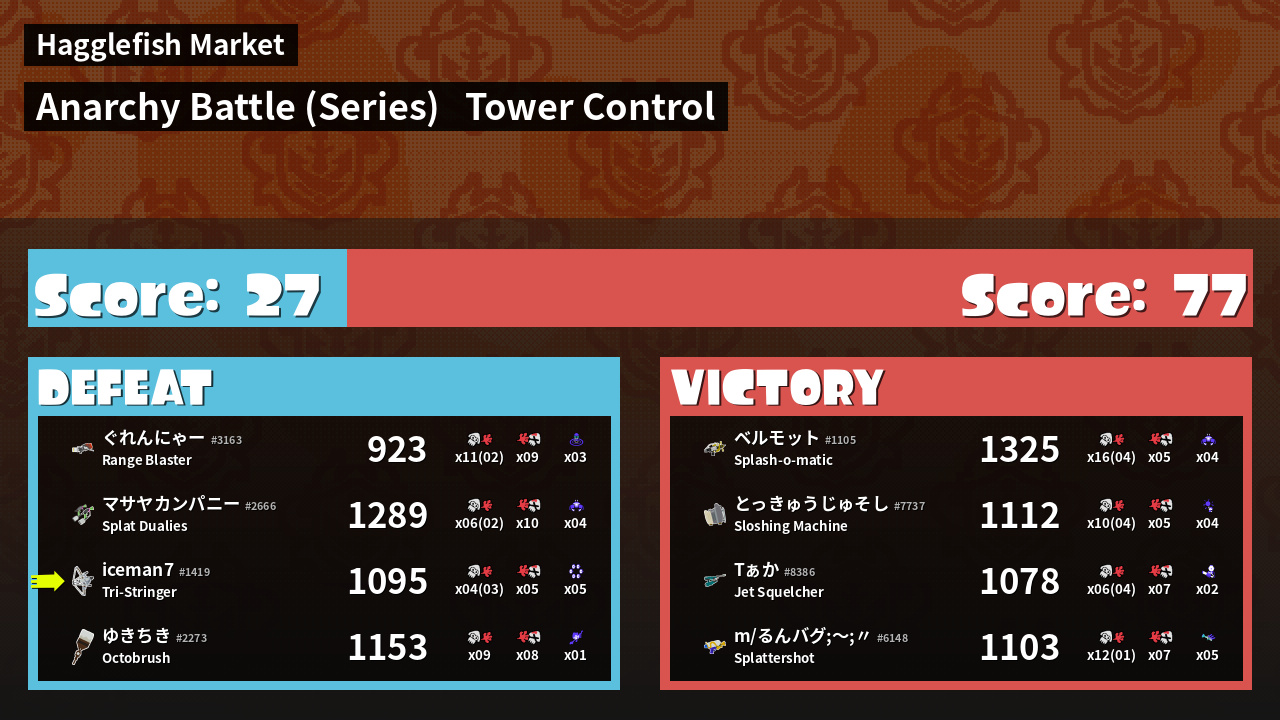 | Medals | #1 Score Booster #1 Splat Assister #1 Damage Taker | ||