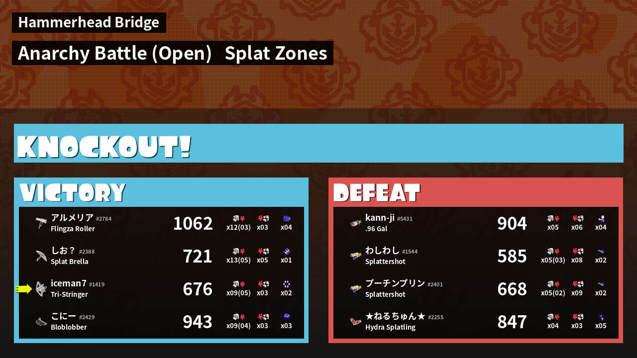 | Mode | Splat Zones - Anarchy Battle (Open) | ||