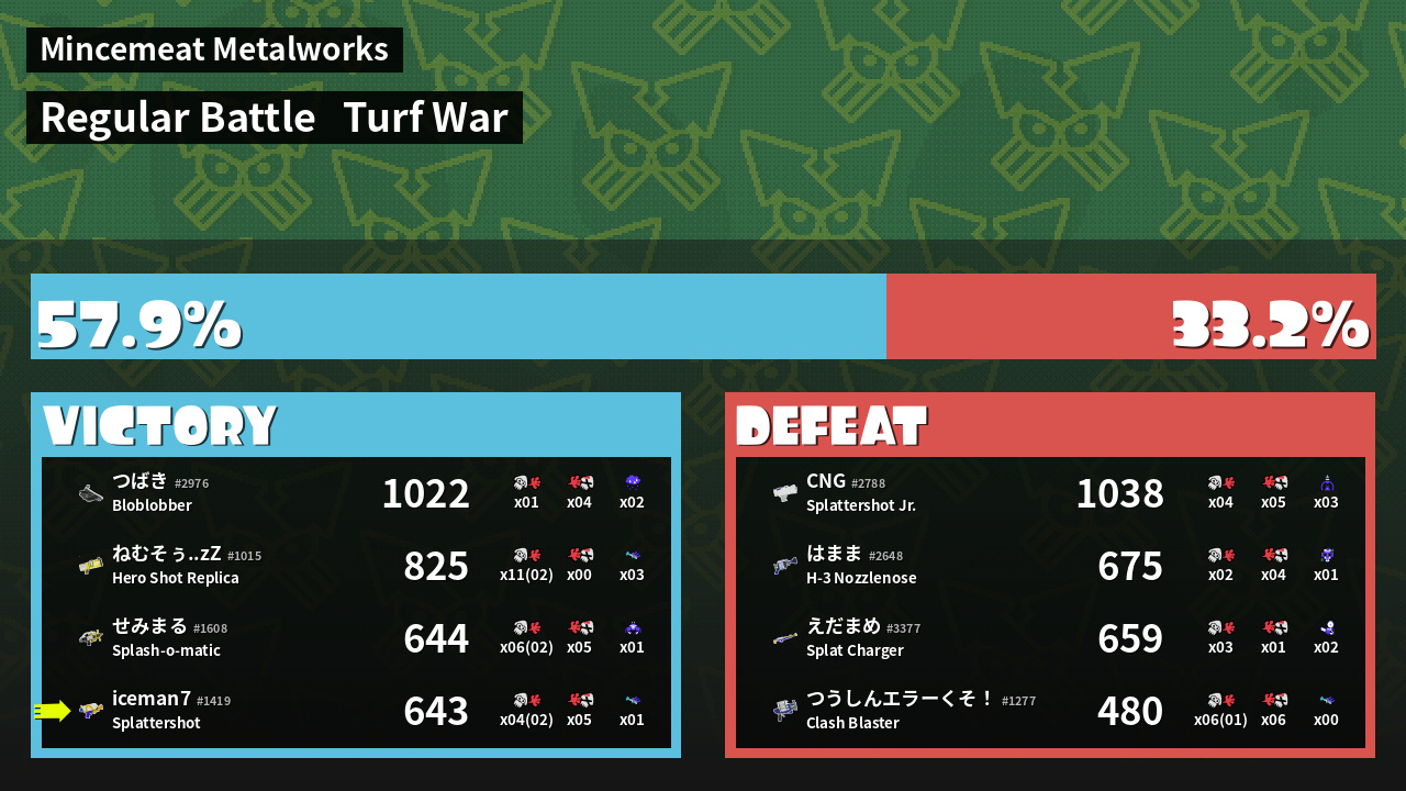 | Medals | #1 Super Jump Spot #1 Splat Assister #2 Enemy-Base Inker | ||
