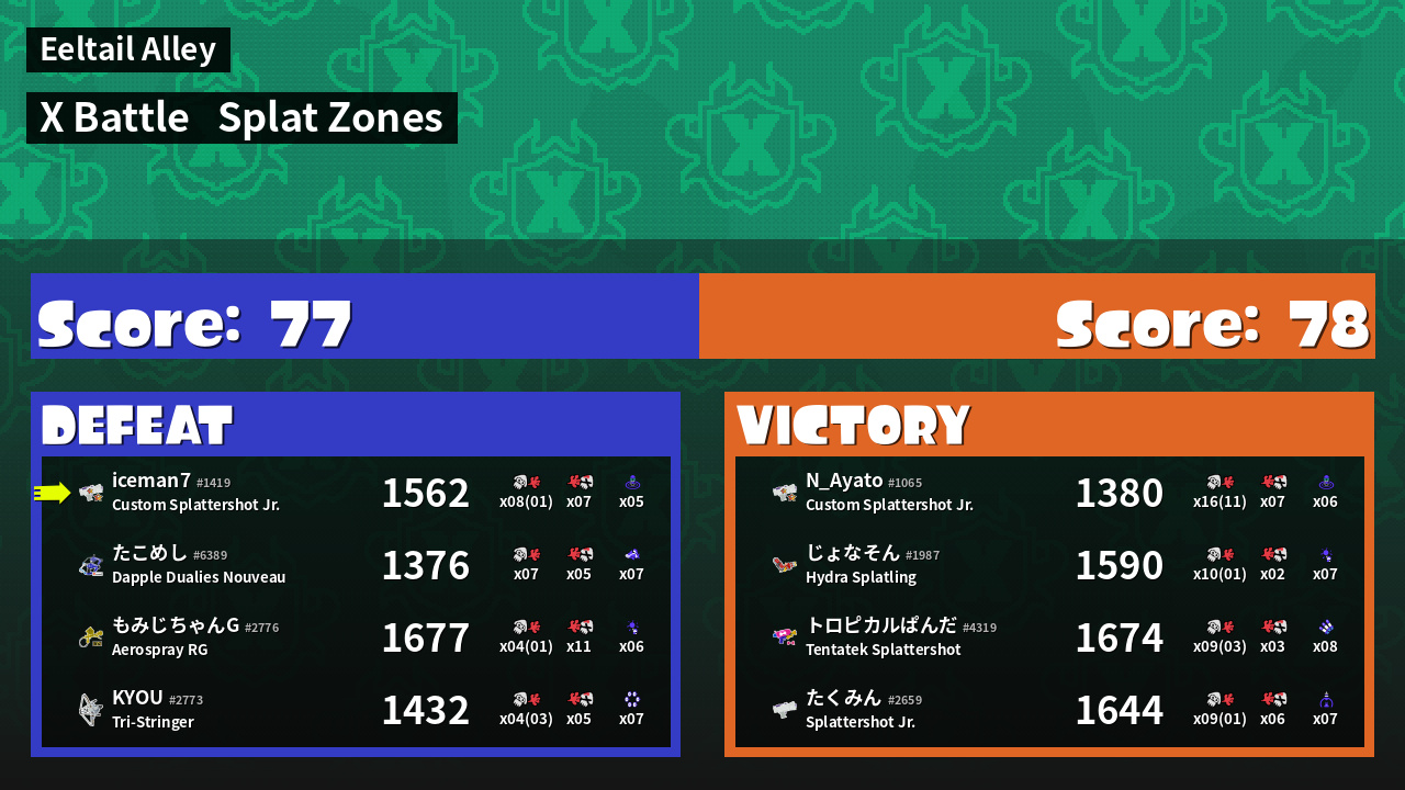 | Mode | Splat Zones - X Battle | ||