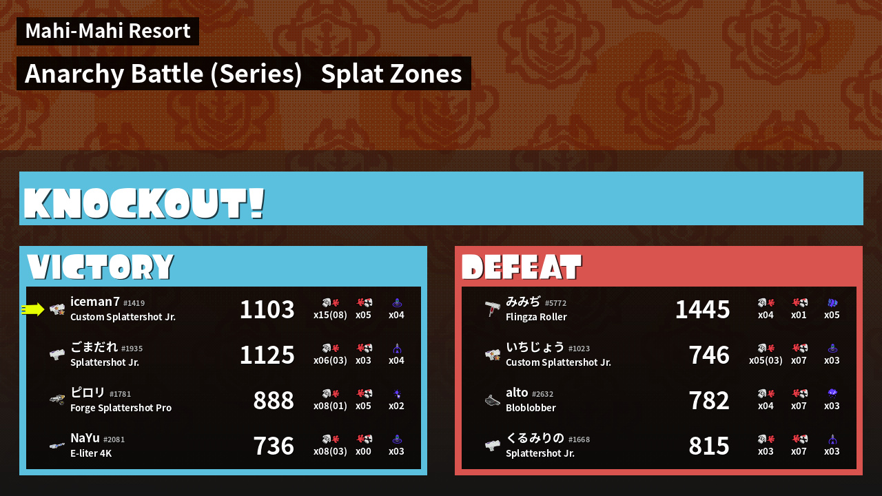 | Medals | #1 Overall Splatter #1 Splat Zone Guard #1 Enemy Splatter | ||