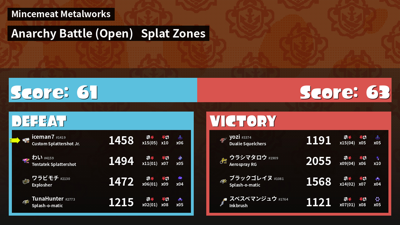| Mode | Splat Zones - Anarchy Battle (Open) | ||