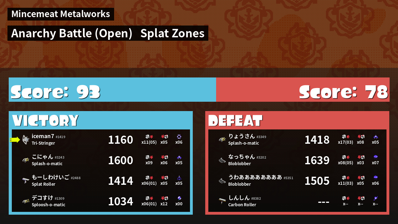 | Mode |    Splat Zones -   Anarchy Battle (Open) | ||
