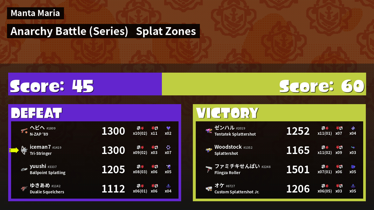 | Mode | Splat Zones - Anarchy Battle (Series) | ||
