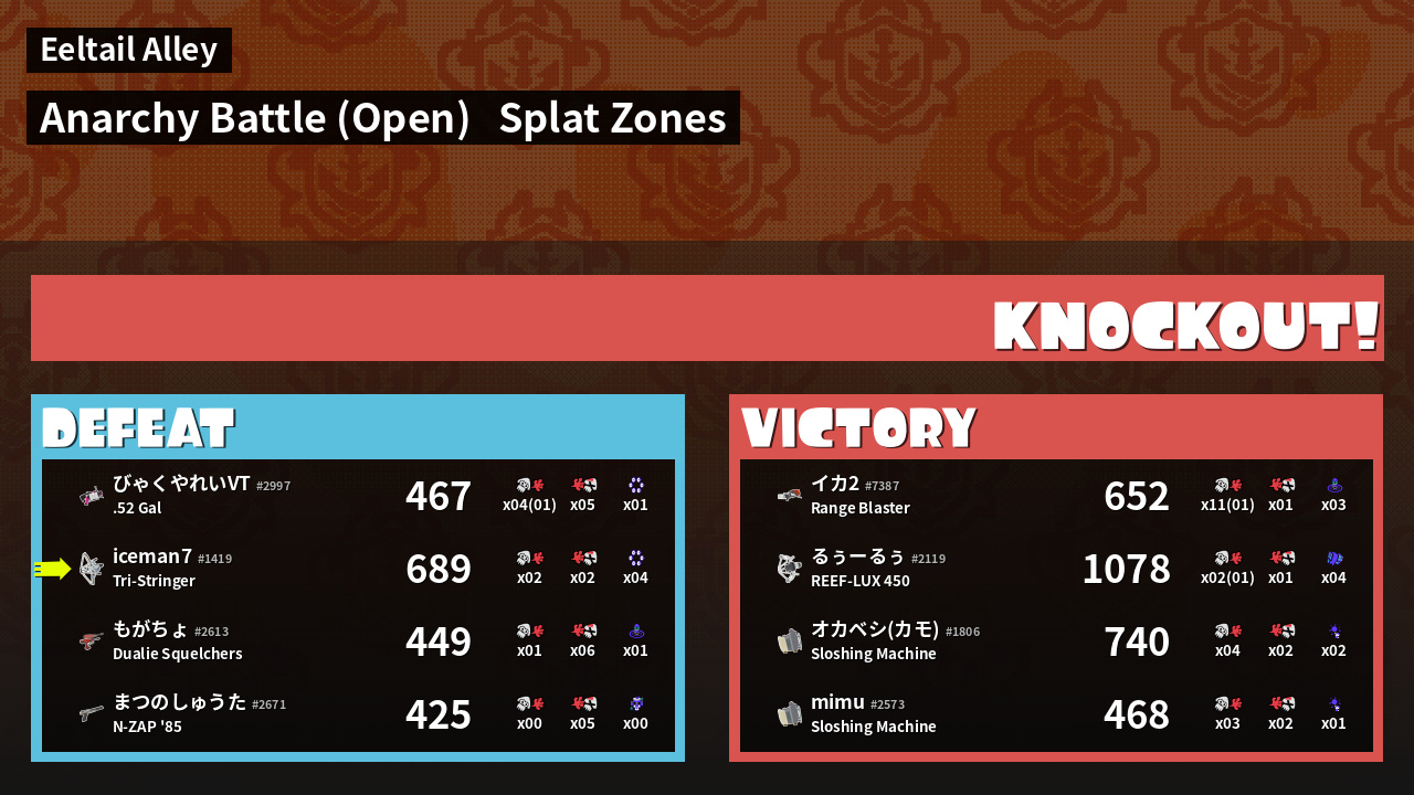 | Mode | Splat Zones - Anarchy Battle (Open) | ||