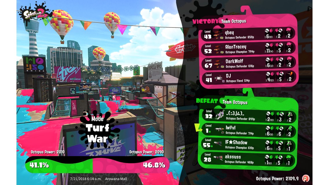 | Splatfest Power | 2,109.9 | |||||||||||||||||||||||||||||||||||||