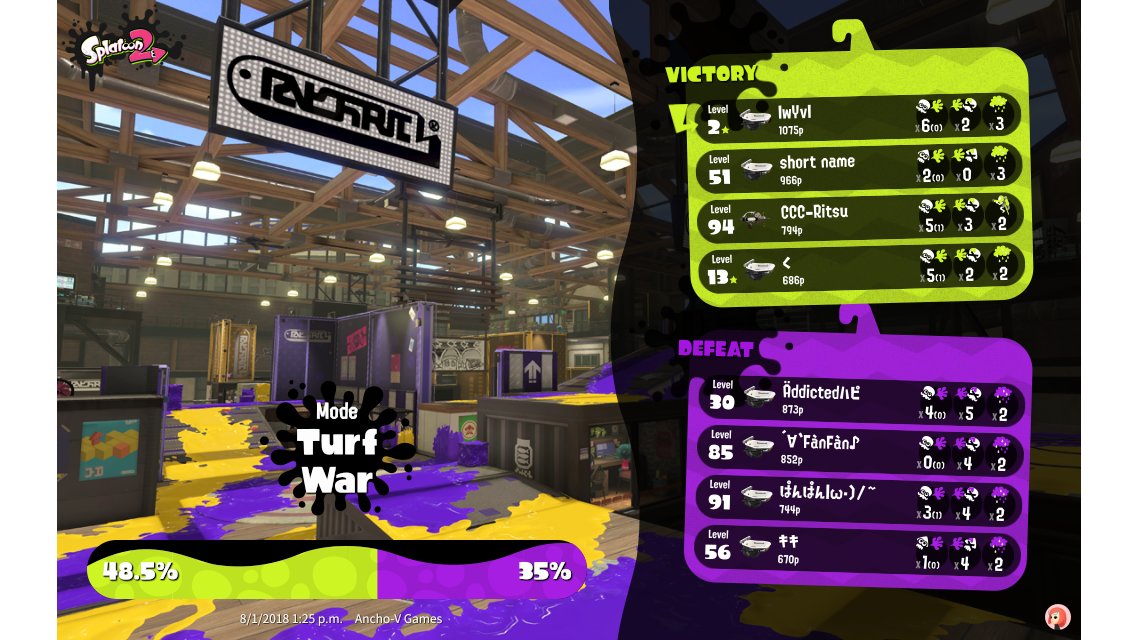 | Mode | Turf War - Private Battle | |||||||||||||||||||||||||||||||||||||
